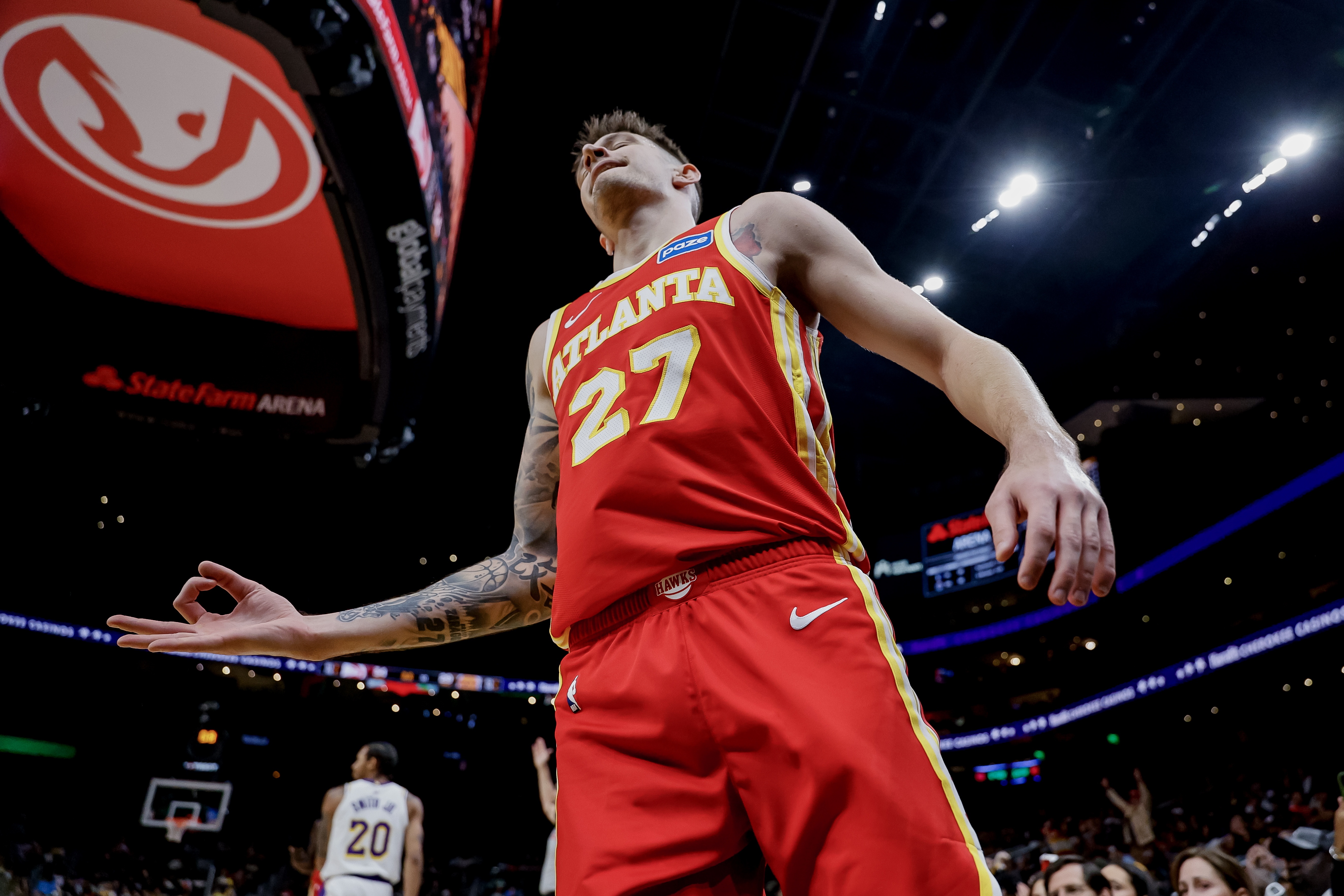 球速直播11月14日讯 NBA常规赛,老鹰半场80-67领先爵士。 上半场比赛,老鹰射手克雷伊奇再次手感火热,出手直接弹无虚发,次节连扔5记三分! 他替补出战15分36秒,6中6,三分5中5,轰下17分1篮板2助攻1抢断,正负值+7。