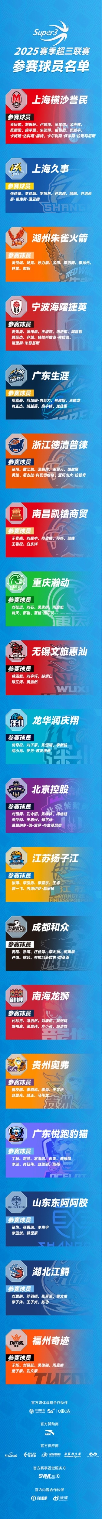 2025赛季超三联赛将于6月13日拉开战幕,19支俱乐部的参赛球员名单如下: 咪咕直播二维码
