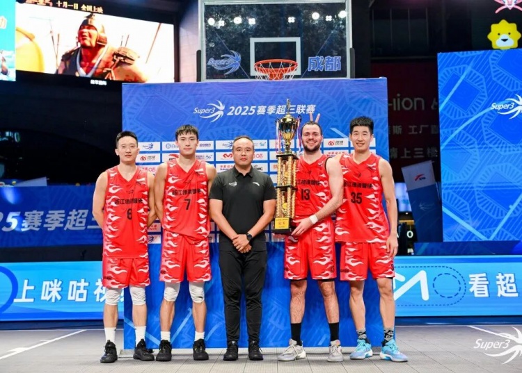 9月21日,2025赛季超三联赛成都大区赛在海滨城购物中心举办。晚间决赛中,浙江德清普徕后程发力,在决胜阶段打出一波6-1的小高潮,以21-17爆分战胜湖州朱雀火箭,上海久事和重庆瀚动分获第三四名。 四川省篮球协会裁委会副主任、成都市篮球协会裁委会主任刘华波为获胜队伍颁奖 决赛回顾 决赛在湖州朱雀火箭与浙江德清普徕之间展开。比赛开局,两队外援在篮下为各队首开比分,随后浙江德清普徕的张翔命中一记远投,帮助球队以3-2取得领先。此后,湖州朱雀火箭凭借李龙元的火热手感一路领先,浙江德清普徕虽屡次追平比分,但直到比赛还剩两分半时才终于凭借张翔罚球命中以14-13反超比分。在双方都陷入犯规困扰时,黄旭挺身而出,他先是两罚全中,随后本队外援科瓦切维奇在内线打中,黄旭锦上添花,命中一记外线远投后,又在内线上篮得手,以21-17打爆比赛,带领球队斩获本站比赛冠军。 数据方面,科瓦切维奇8分6篮板1助攻,黄旭7分1助攻,张翔4分2篮板,魏政贤2分4篮板;湖州朱雀火箭这边,李龙元8分2篮板3助攻,尼古拉4分6篮板,李浩南4分4篮板,孟翔1分1篮板1助攻。 成都大区赛最终排名: 1. 浙江德清普徕 2. 湖州朱雀火箭 3. 上海久事 4. 重庆瀚动 5. 南海龙狮 6. 成都和众 7. 龙华润庆翔 8. 贵州贵阳奥弗 下一站大区赛将于9月25日-9月26日在德清赛区举办。 咪咕直播二维码