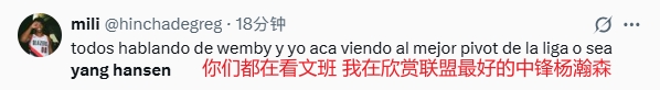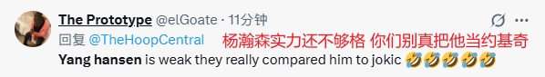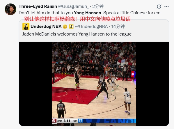 2分1板被隔扣!美网友:别真把杨瀚森当约基奇&快用中文喷垃圾话